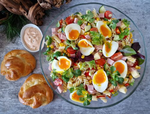 Pastasalat med ost og skinke